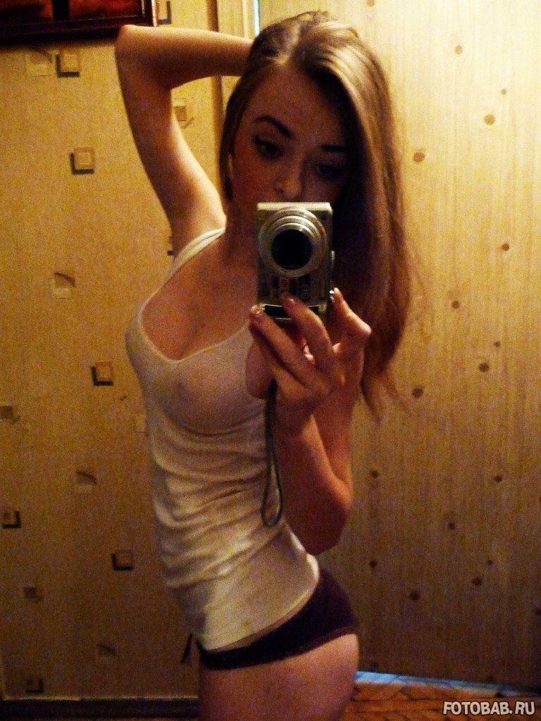 Худышка сделала пикантные голые селфи фотки у себя во дворе