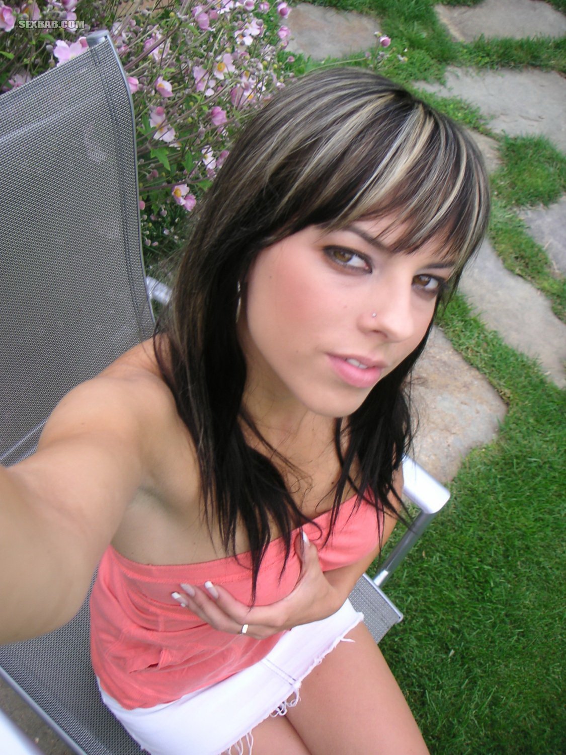 Описание: Как говорится делать было нечего и худенькая молодая девчонка, находясь у себя во дворе, сделала пикантные голые селфи фотки. Оглянувшись по сторонам, чтобы не было соседей, крошка приспустила топик и сняла свои вкусные сисечки. Но этого возбужденной милашке показалось мало и раздевшись полностью, она сняла себя голышом, а затем отправила фотки своему парню, чтобы подразнить его.