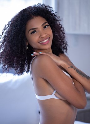 Описание: Ярко улыбаясь на камеру, шикарная негритянка с упругой красивой задницей и натуральными сиськами охотно снимает с себя нижнее белье и, лежа голышом на большой кровати, развратно раскрывает перед зрителями свою бритую промежность с темными половыми губами и розовой дыркой.