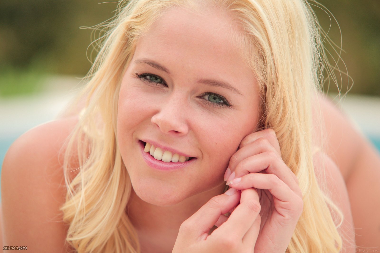 Белобрысая сучка разделась до гола у бассейна