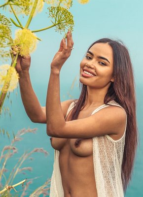 Смуглянка с голыми сиськами и жопой на природе