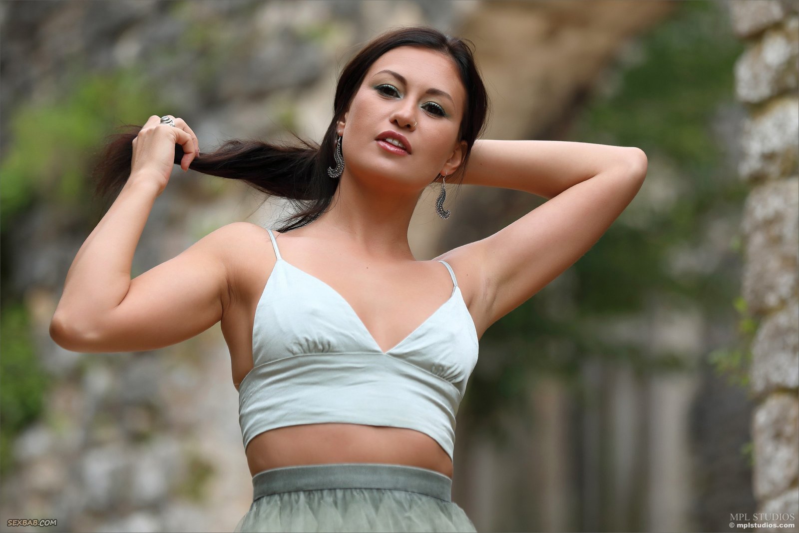Описание: Кокетливо задирая перед камерой свою пышную юбку, загорелая сексуальная брюнетка без трусов с удовольствием оголила свою нежную упругую попу. Затем с выставленными на показ миниатюрными титечками горячая чертовка соблазнительно задирает свои стройные ножки и с разных интригующих ракурсов засвечивает перед нами гладкую нежную киску.