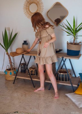 Рыжая детка оголила бритую письку