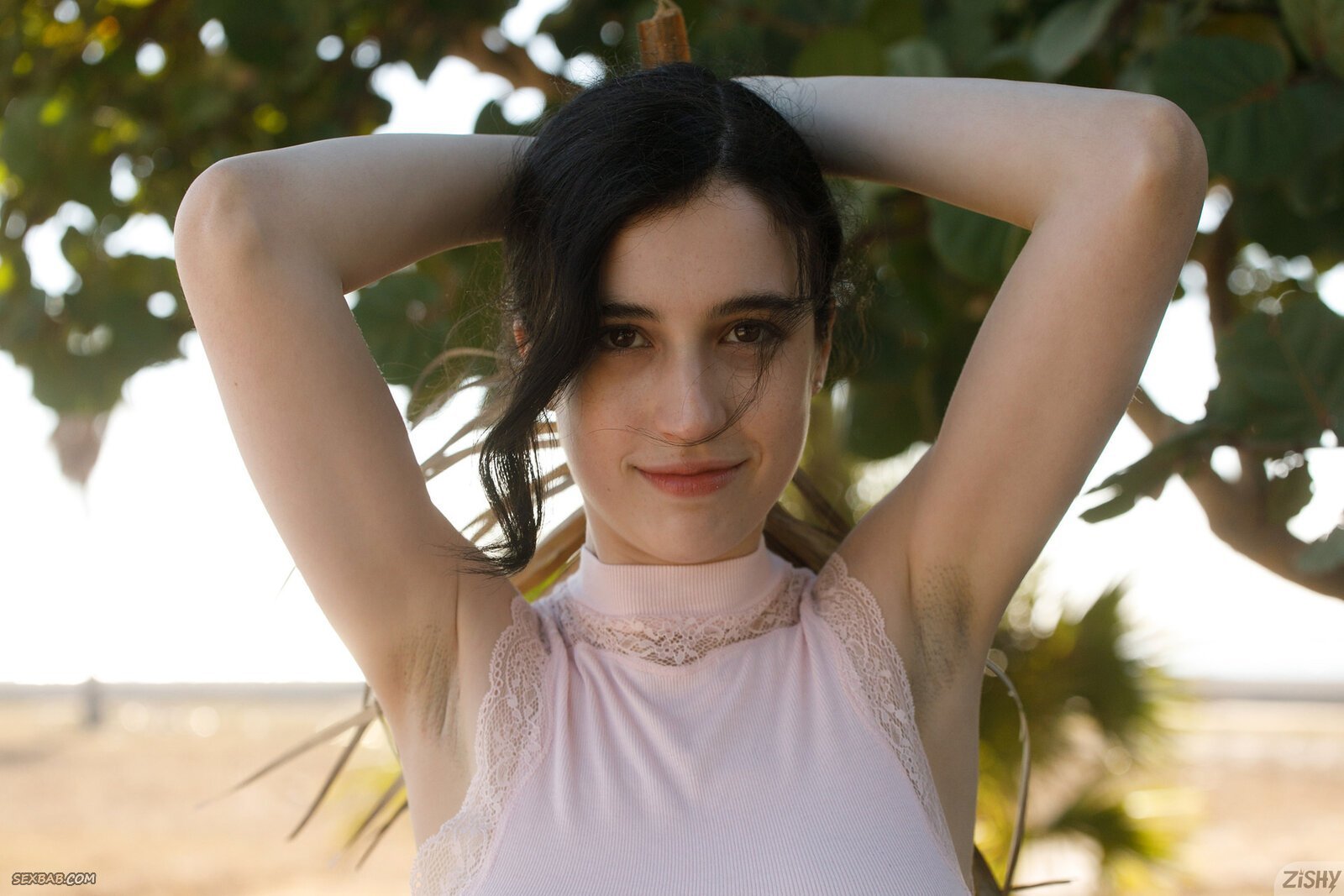 Описание: Игривая брюнетка прогуливается в свободных шортиках и как бы ненароком засвечивает перед нами свою бритую киску, которая робко выглядывает из под коротких шорт. А что бы ещё больше подстегнуть наш интерес к своей персоне, девушка стягивает майку и открывает свои чудесные титьки внушительного размера и симпатичной формы.