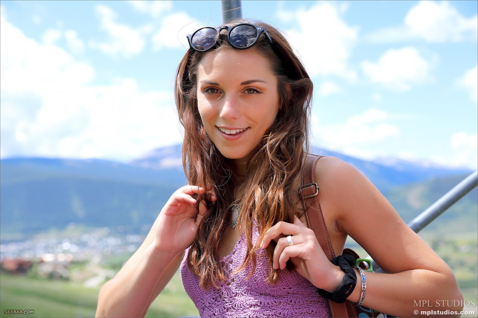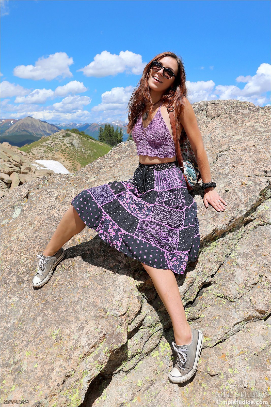 Описание: Невообразимо милая девушка отправилась на прогулку в национальный парк в горах, там она дразнит нас своими прелестями, то и дело задирая юбку и обнажая грудь. Сперва красавица позволила взглянуть на её красивые сиськи с аккуратными сосками, а затем показала сладкую попку в стрингах.