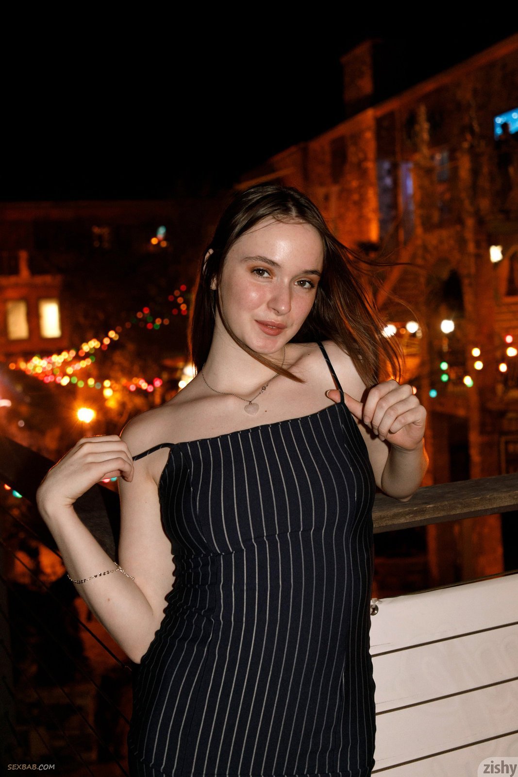Описание: Молоденькая и довольно раскрепощенная, не скованная комплексами девушка с привлекательной внешностью игриво позирует на вечерней прогулке и засвечивает там свои чёрные трусики. При это улыбаясь и строя глазки, сексуальная красавица испытывала массу волнующих её чувств и в процессе так же оголяла натуральные упругие сиськи.