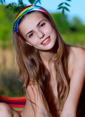 Описание: Абсолютно обнаженная молодая девушка расслабленно отдыхает в гамаке на природе, открыто демонстрируя на камеру свои свежие возбуждающие прелести. Похотливо раздвигая стройные ноги, развратная девица с упругими сиськами выпячивает свою голую промежность с бритой сладкой пиздёнкой.