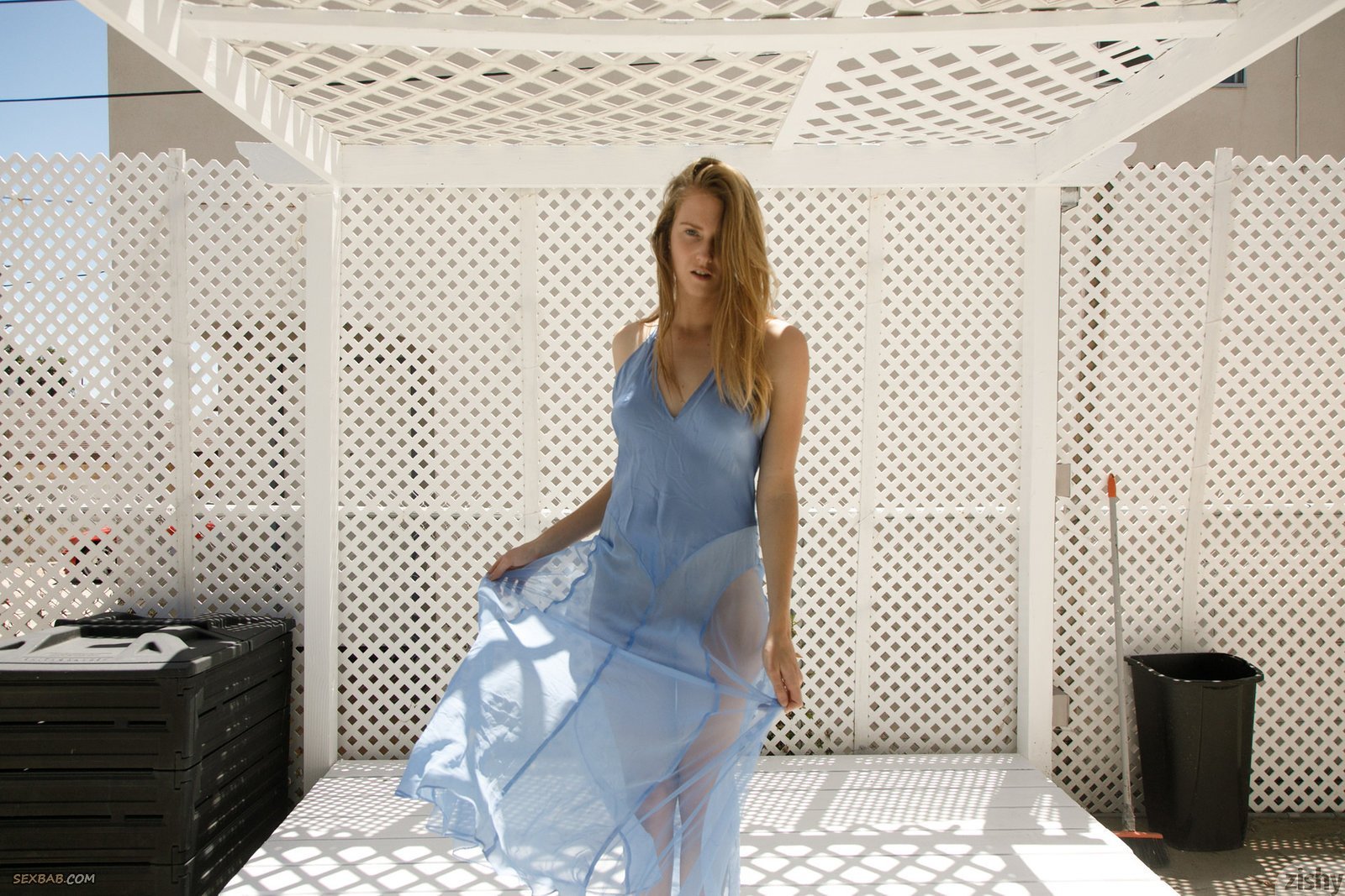 Описание: Вернувшись домой с волнующей идеей в голове и мигом сняв длинное платье, оставаясь в одних только трусиках, привлекательная и весьма сексуальная девушка устраивает легкий бандаж своим маленьким сиськам. Обвязавшись канатом, стройная особа устраивается на кровати и чередует разные возбуждающие позиции, порой нежно трогая сосочки.