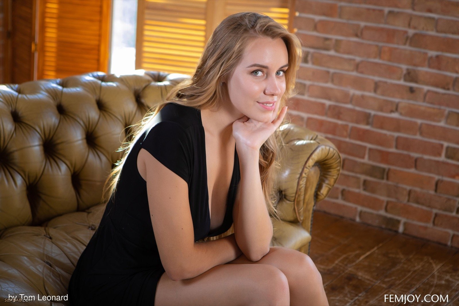 Описание: Находясь дома и эротично позируя в разных ракурсах, светловолосая милая девушка медленно снимает с себя короткое платье и располагается на кожаном диване. Часто прогибаясь раком и нежно трогая натуральные сиськи, сексуальная молодая блондинка оттопыривает сочную попку и засвечивает бритую письку.