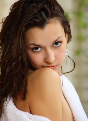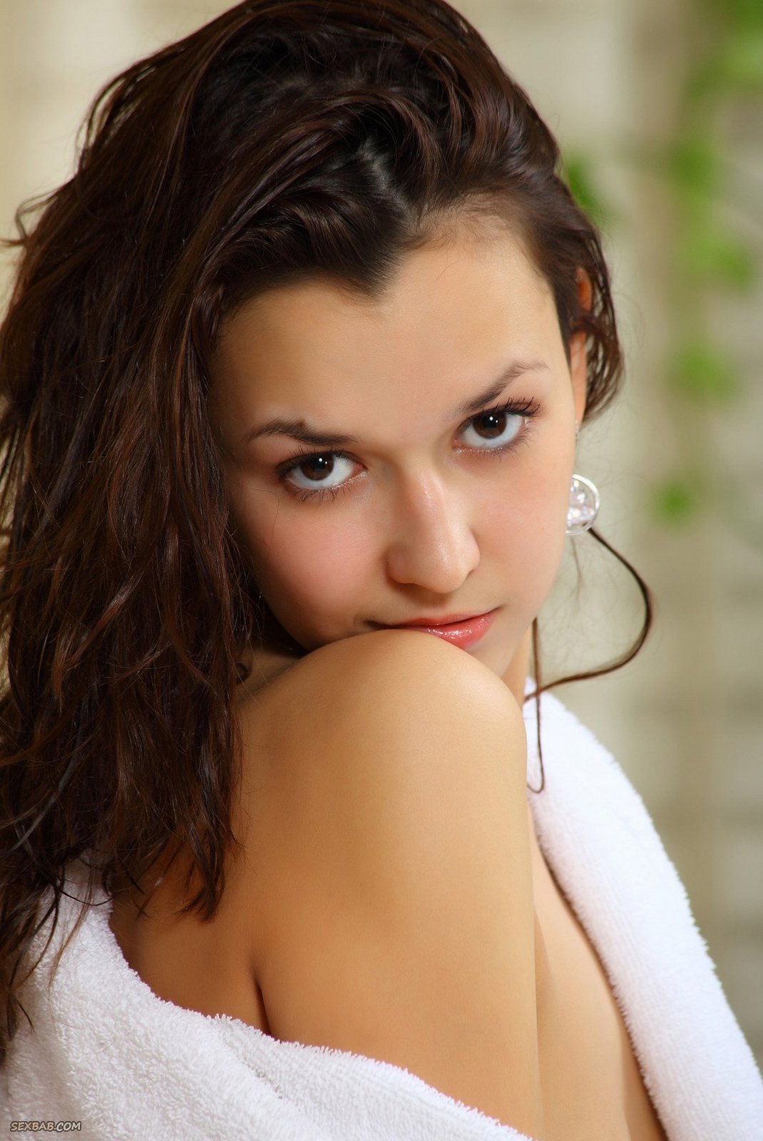 Горячая детка позирует после душа