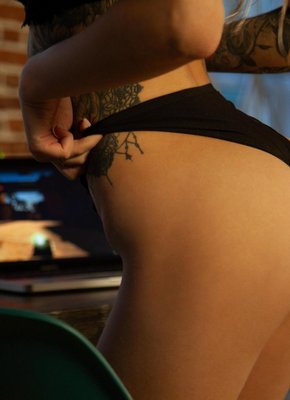 Модель с татуировками в нижнем белье
