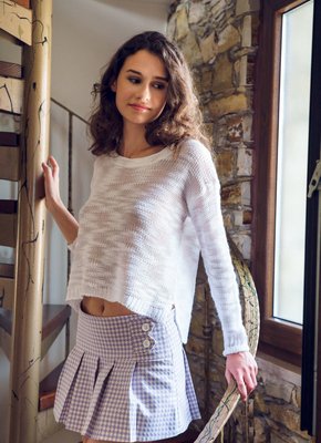 Описание: Спустившись по лестнице со второго этажа и устроившись перед фотокамерой, откровенно позируя и нежно трогая себя руками, тощая брюнетка медленно разделась до гола, стягивая юбку и кофточку с трусиками. В обнаженном виде худая девушка с плоскими сиськами устраивается на тумбочке и раздвигая ноги ласкает бритую письку.