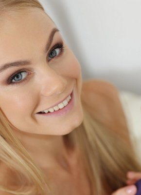 Блондинка балуется вибратором