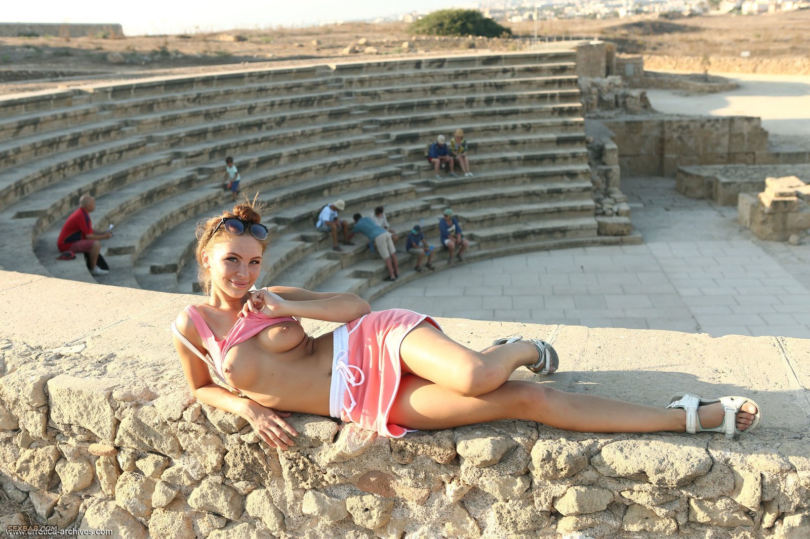 Описание: Удалец муж и его молодая жена отправились на экскурсию, но она оказалась слишком скромной и суженная нашего фотографа показала бритую пизду под своей короткой юбкой, прямо на улице среди посторонних людей. Этим она не ограничилась и позволила взглянуть на упругую грудь которая с радостью выскочила из под майки.
