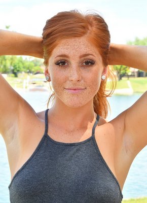 Описание: Гуляя на улице и наслаждаясь летним деньком, привлекательная рыжая девка с пирсингом в пупке порой прогибается раком на лавочке и оттопыривает попку, а раздвигая ноги немного засвечивала бритую письку сквозь короткие шорты. А вскоре, сексуальная красотка возвращается домой и оголяет маленькие сиськи перед камерой.