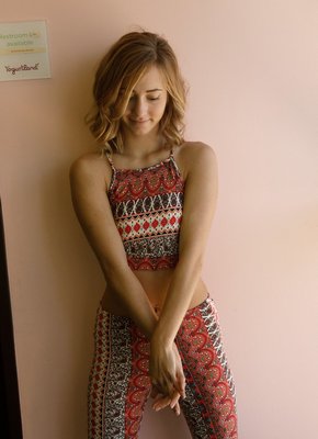 Описание: Привлекательная раскрепощенная девушка со стройной фигурой и светлыми локонами, нарядившись в красочный наряд, начала эротично позировать на улице и в кафе, в будущем немного оголяясь и подробно показывая упругие ягодицы. В процессе страстная крошка ощущала удовольствие и даже немного возбуждалась от происходящего.