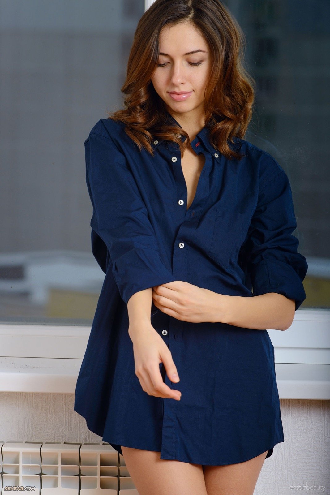 Описание: Располагаясь рядом с окном у себя дома, голая и немного худощавая девушка в длинной рубашке и носках начинает эротично позировать и выставлять на показ бритую письку с крошечной щетиной на лобке. Не останавливаясь на этом, стройная крошка с плоским животиком чередовала разные позиции на полу и так же засвечивала маленькие сиськи с тощей попкой.