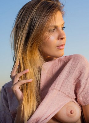 Описание: Гуляя в поле, голожопая красавица с худенькой фигурой не выдержала и уже спустя несколько минут стянула платье, под которым не оказалось нижнего белья. В дальнейшем полностью голенькая девушка без рдежды старалась чередовать разные позиции, в которых нежно трогала себя цветочком и ложилась на подстилку, что позволило ей подробно показать натуральные сиськи с упругой попкой и гладко выбритую письку.