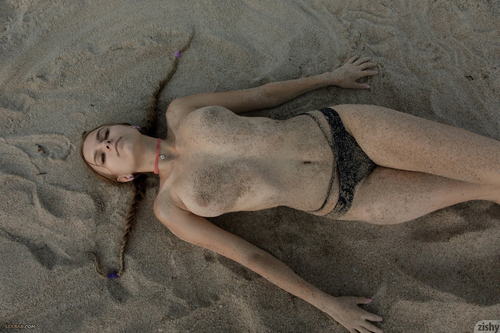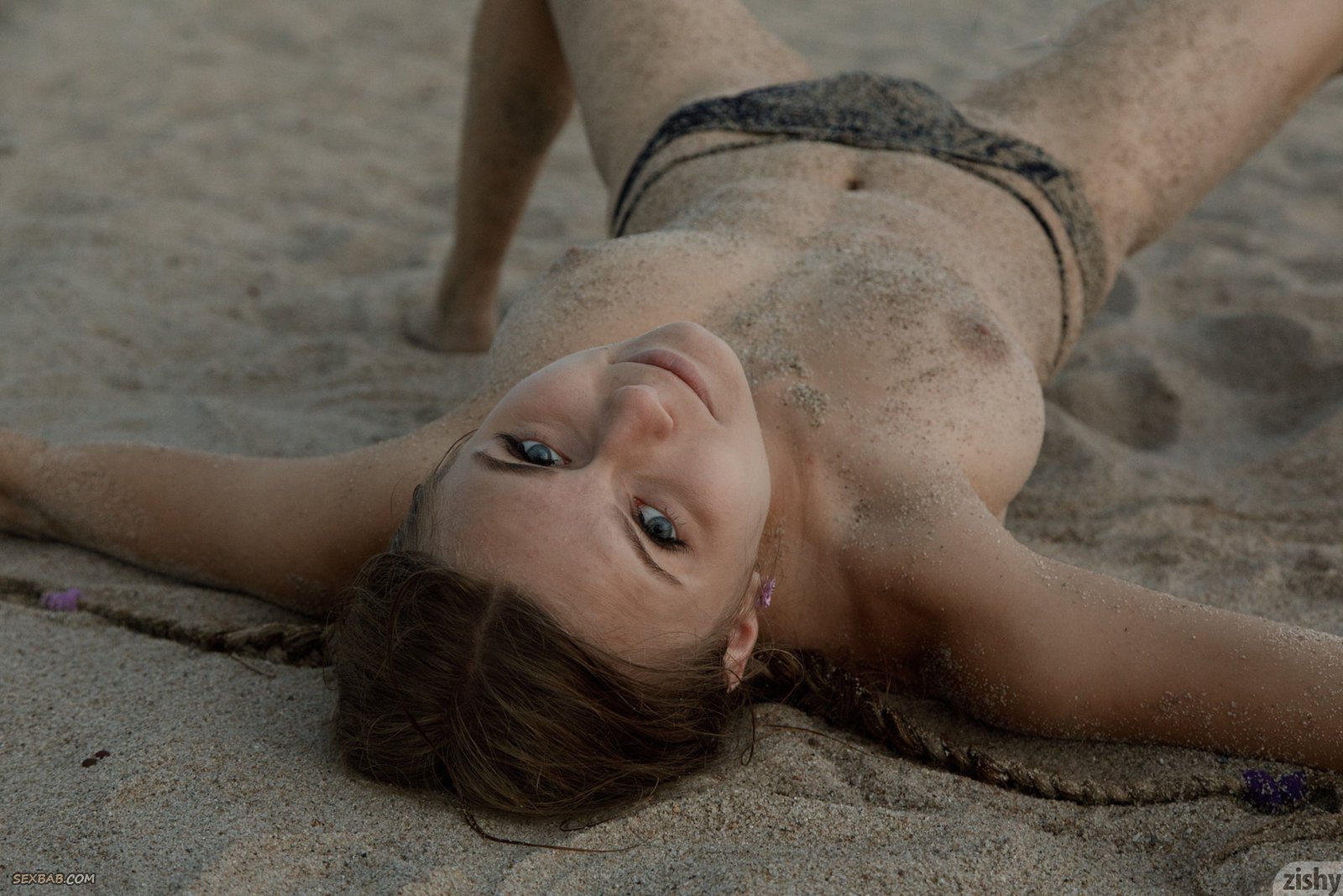 Описание: Очаровательная молодая девушка, скинув трусики на пляже, начинает позировать голая кувыркаясь при этом в песке, показывая сексуальное тело с разных ракурсов. Засветив натуральные сиськи, крошка переворачивается на животик и выставляет на показ сочную упругую попку, а так же с этого ракурса можно было рассмотреть бритую и немного грязную письку.