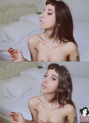 Описание: Покуривая сигарету и кувыркаясь перед фотографом на кровати, красивая растаманка с татуировками и пухлыми губами медленно раздевается и вскоре оказывается абсолютно голой. Стянув с себя трусики, сексуальная шалунья хвастается аппетитной задницей с упругими ягодицами и натуральными буферами которые так и хочется сжать в своих руках.