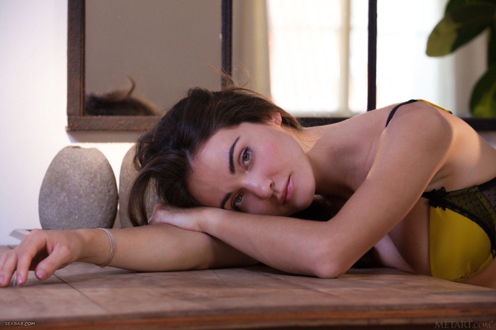 Описание: Устроившись за столом на кухне, очаровательная женщина с упругими формами снимает лифчик с трусиками и обнажённая начинает эротично позировать, чередуя разные позы перед фотографом. Строя глазки и нежно поправляя волосы, крошка демонстрирует шикарные натуральные буфера с бритой писькой, а развернувшись и прогнувшись раком к объективу, она позволяет разглядеть сочную попку.