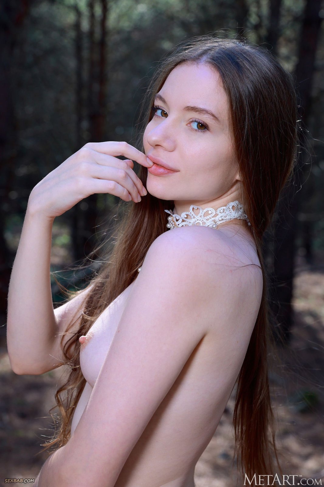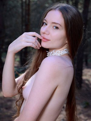Описание: Медленно и немного кокетливо стягивая с себя единственную одежду в виде прозрачных перчаток, обнаженная девушка с гладкой нежной кожей красиво позирует перед нами в лесу и, соблазнительно поглаживая себя в разных чувствительных местечках, развратно показывает в промежности сладкую пухлую писечку.