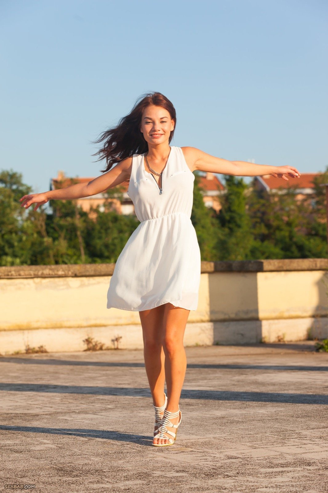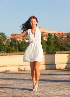 Обаятельная азиатка в лёгком платье