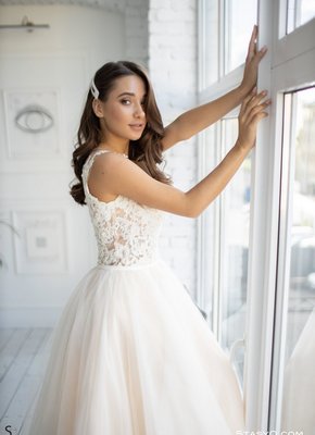 Описание: Обворожительная и невероятно сексуальная невеста в чулках эротично позирует в пышном белом платье и без него. Обнаженной стройная красотка с татуировками под натуральными упругими сиськами нежно поглаживала себя руками и ощущала возбуждение, так же не забывала в процессе засвечивать бритую письку и сочную попку.