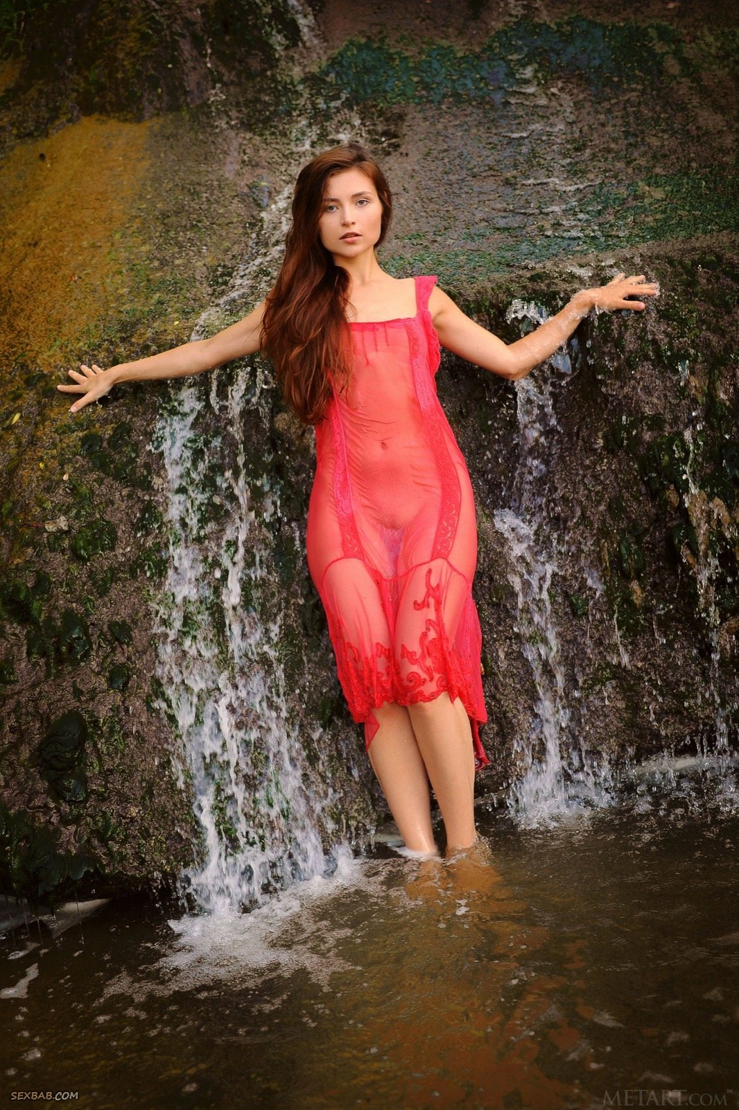 Описание: Молоденькая красотка с длинными локонами и плоской грудью, находясь на природе, скинула все лишнее и намочилась под водопадом, параллельно эротично позируя и демонстрируя сексуальное тело. Мило улыбаясь, в будущем очаровательная стройняшка присела на корточки и раздвинув промежность показала мокрую гладко выбритую письку.