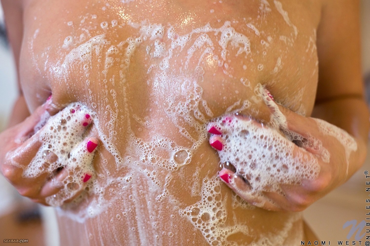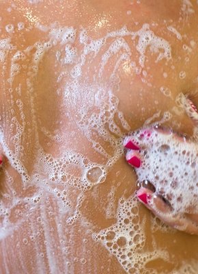 Обнаженная милашка обливается в душе
