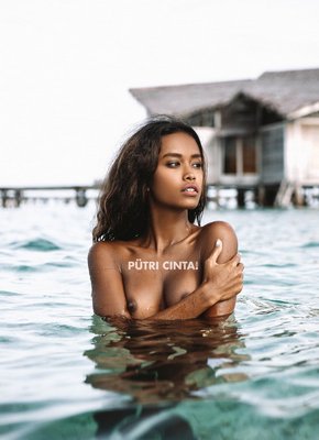 Описание: Находясь на отдыхе в домике у моря, худая привлекательная индонезийка в купальнике, поглаживая себя руками, оголила упругие силиконовые сиськи с торчащими сосочками. В дальнейшем стройняшка забралась в воду и продолжила эротично позировать, порой засвечивая бритую письку.