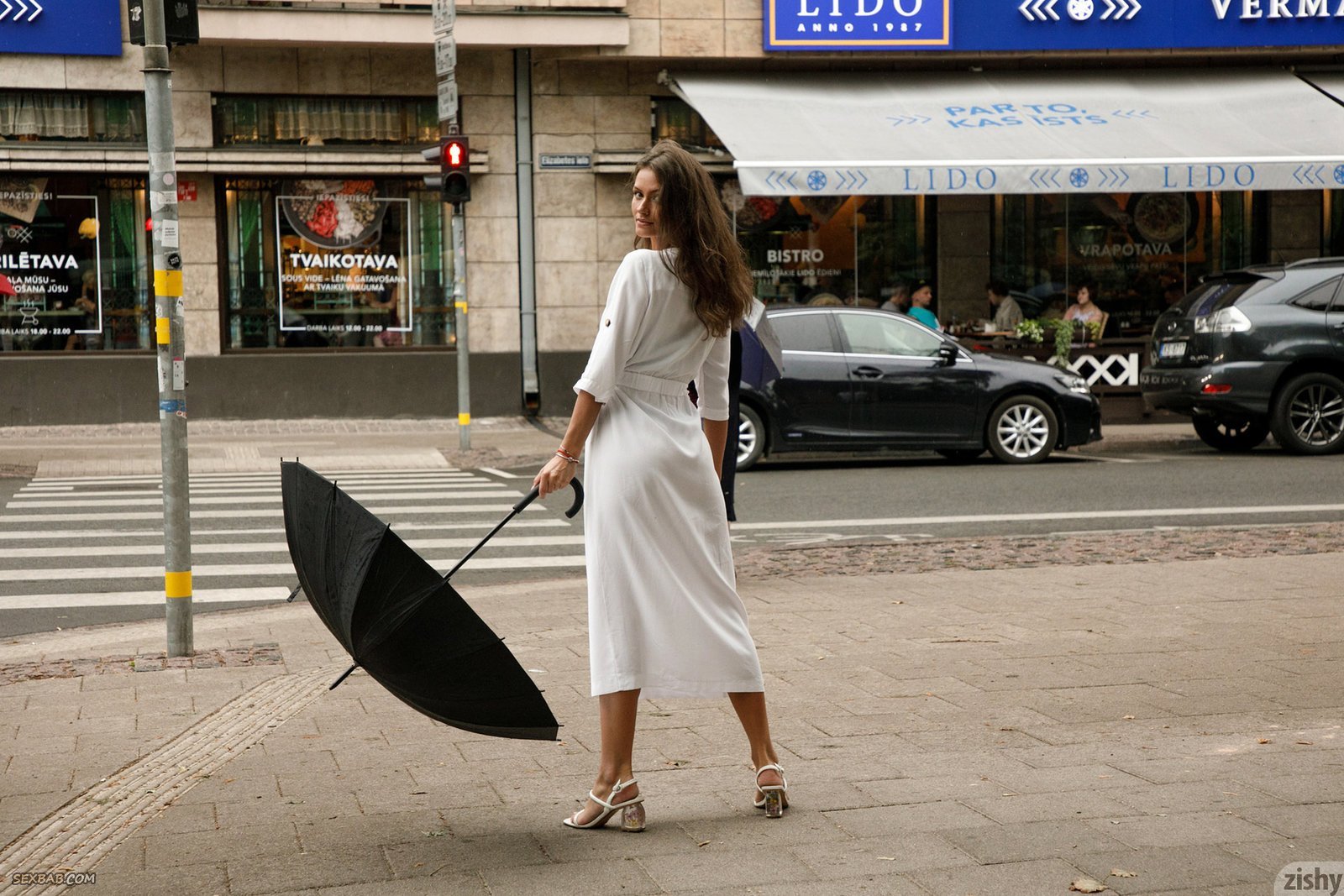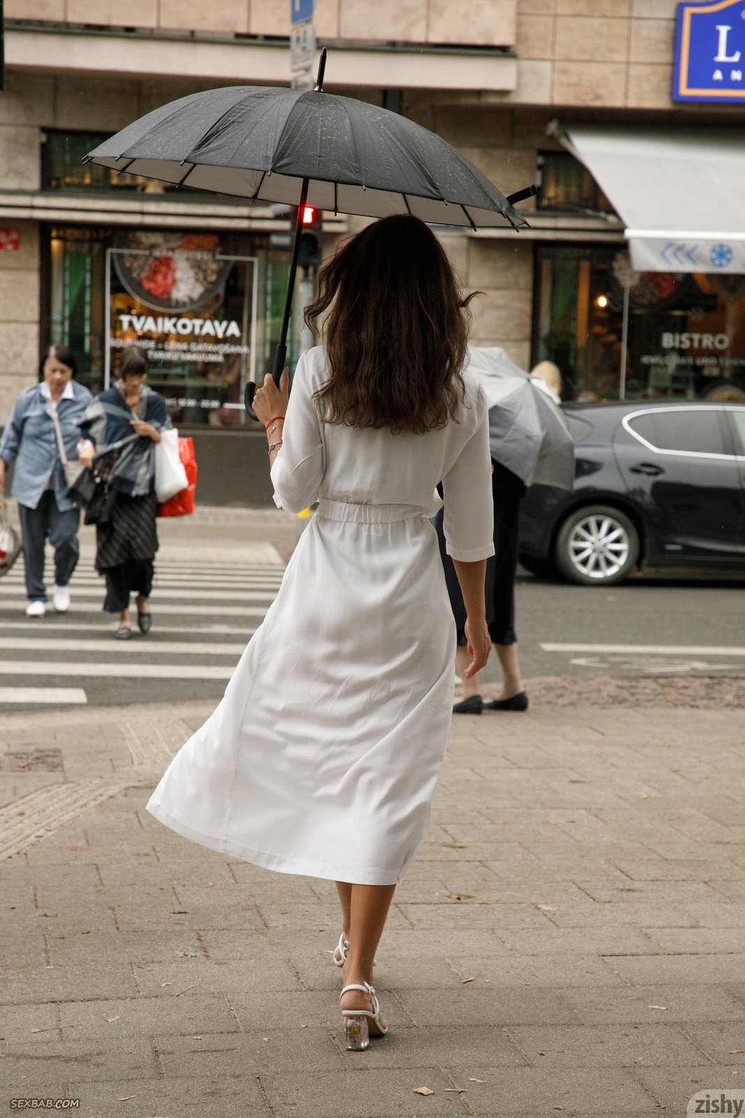 Описание: Вооружившись зонтом, длинноногая девушка в плаще отправилась непринуждённо гулять и наслаждается погодой на улице, в некоторые моменты демонстрируя упругую попку в чёрных трусиках. В конечном итоге все заканчивается тем, что сексуальная мадама садится в машину на заднее сидение, где встаёт раком задрав подол и приглашает нас заняться чем-то непристойным, но жутко приятным.