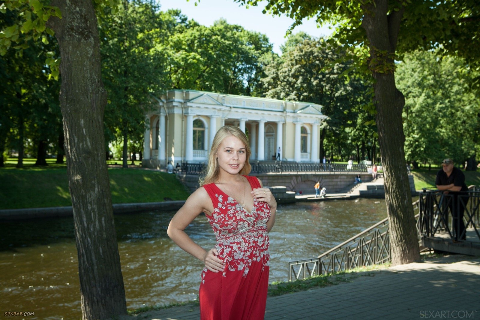 Описание: Симпатичная блондинка с достаточно сексуальным телом, нарядившись в платье, отправилась на прогулку в парк, где уже через несколько минут принялась засвечивать натуральные сиськи и возбуждающую гладко выбритую промежность. Спустя время, очаровательная крошка вернулась домой, где раздевшись полностью продолжила эротично позировать на кушетке и полу.