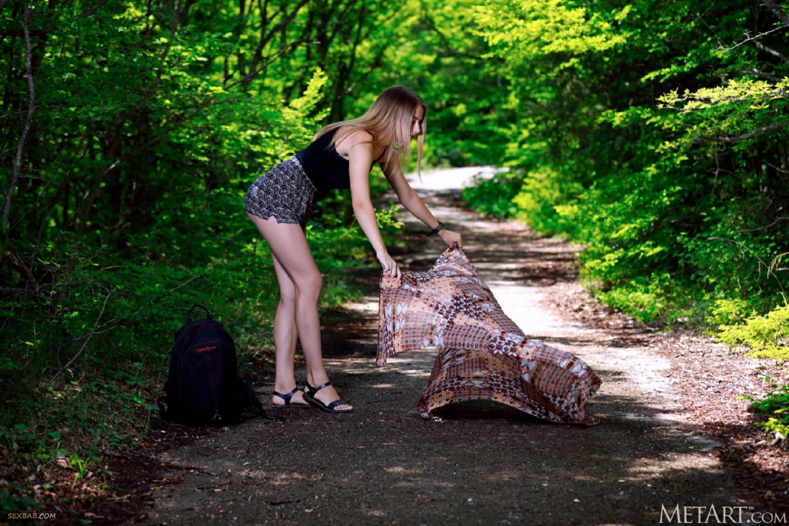 Описание: Устроив привал посреди аллеи, кокетливая чертовка с большими сочными буферами разделась до гола на природе и тут же принялась демонстрировать свои выдающиеся прелести. Горячая детка не стесняется показать крупным планом свою нежную попочку, а затем удобно садится на землю с раскрытой на показ рогаткой и хвастается бритой писечкой.
