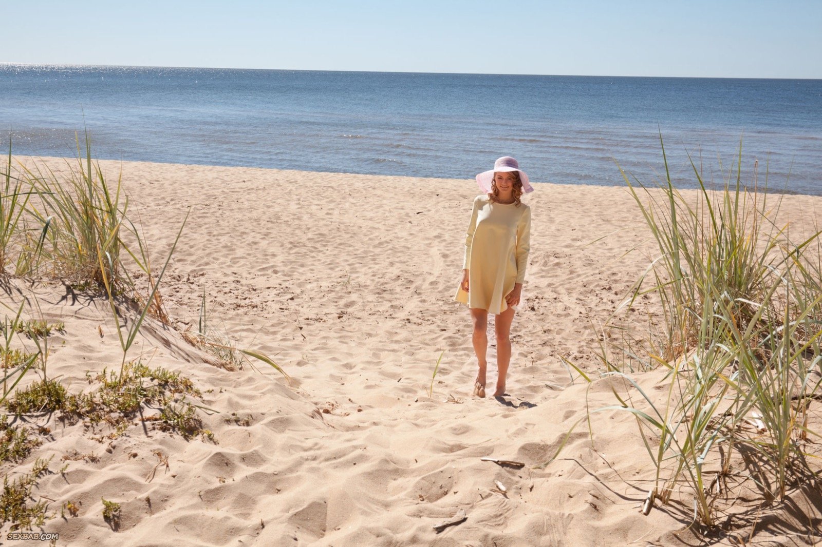Описание: Наслаждаясь солнышком на пляже, в какой-то момент сексуальная девка шляпе принимается медленно оголятся попочку, располагаясь на песке и выставляя промежность с наиболее возбуждающих ракурсов. Помимо упругих ягодиц, очаровательной крошке так же удается показать натуральные подтянутые сиськи с торчащими сосочками и бритую киску с волосиками на лобке.