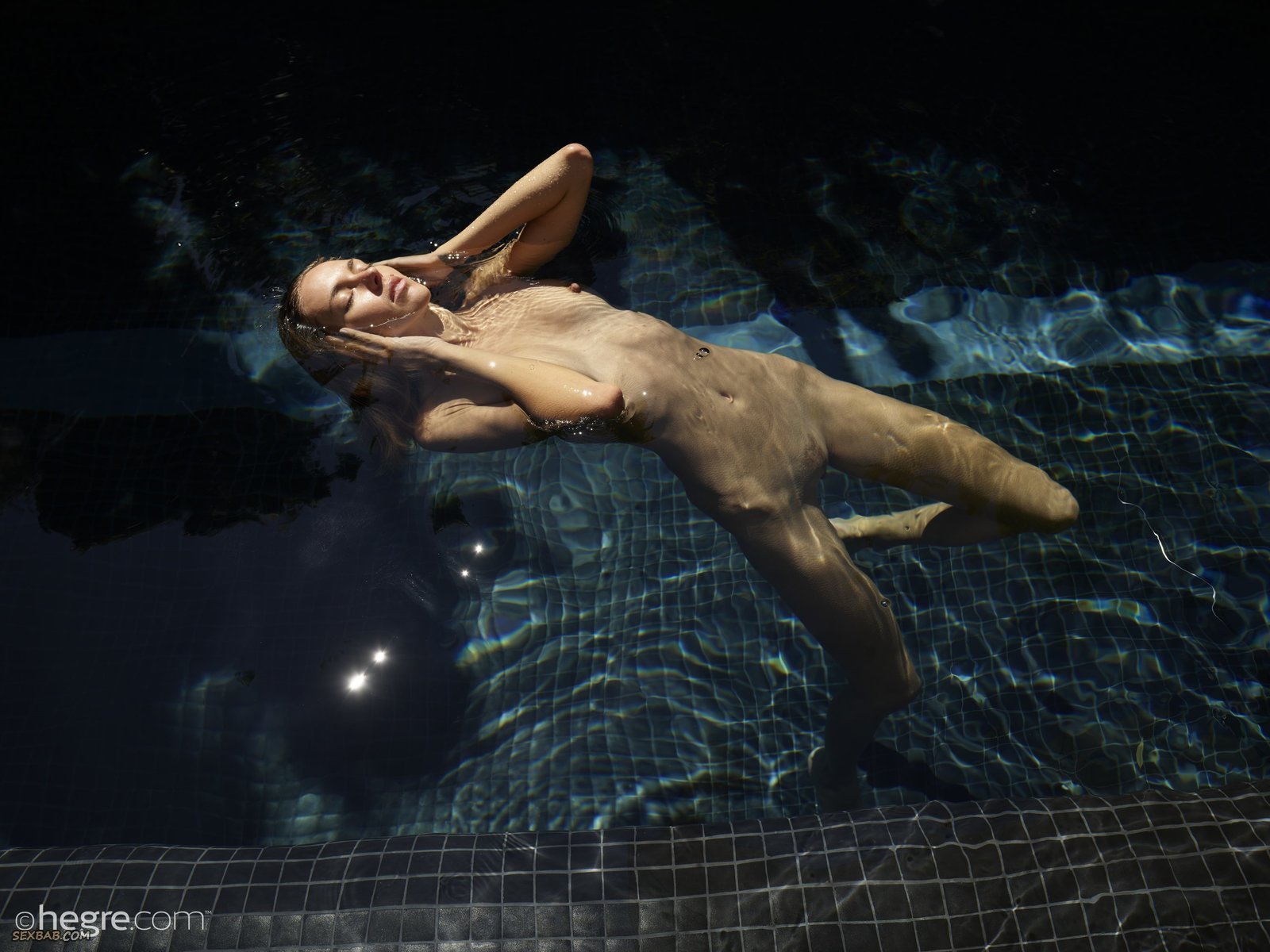 Голая шпала купается в бассейне