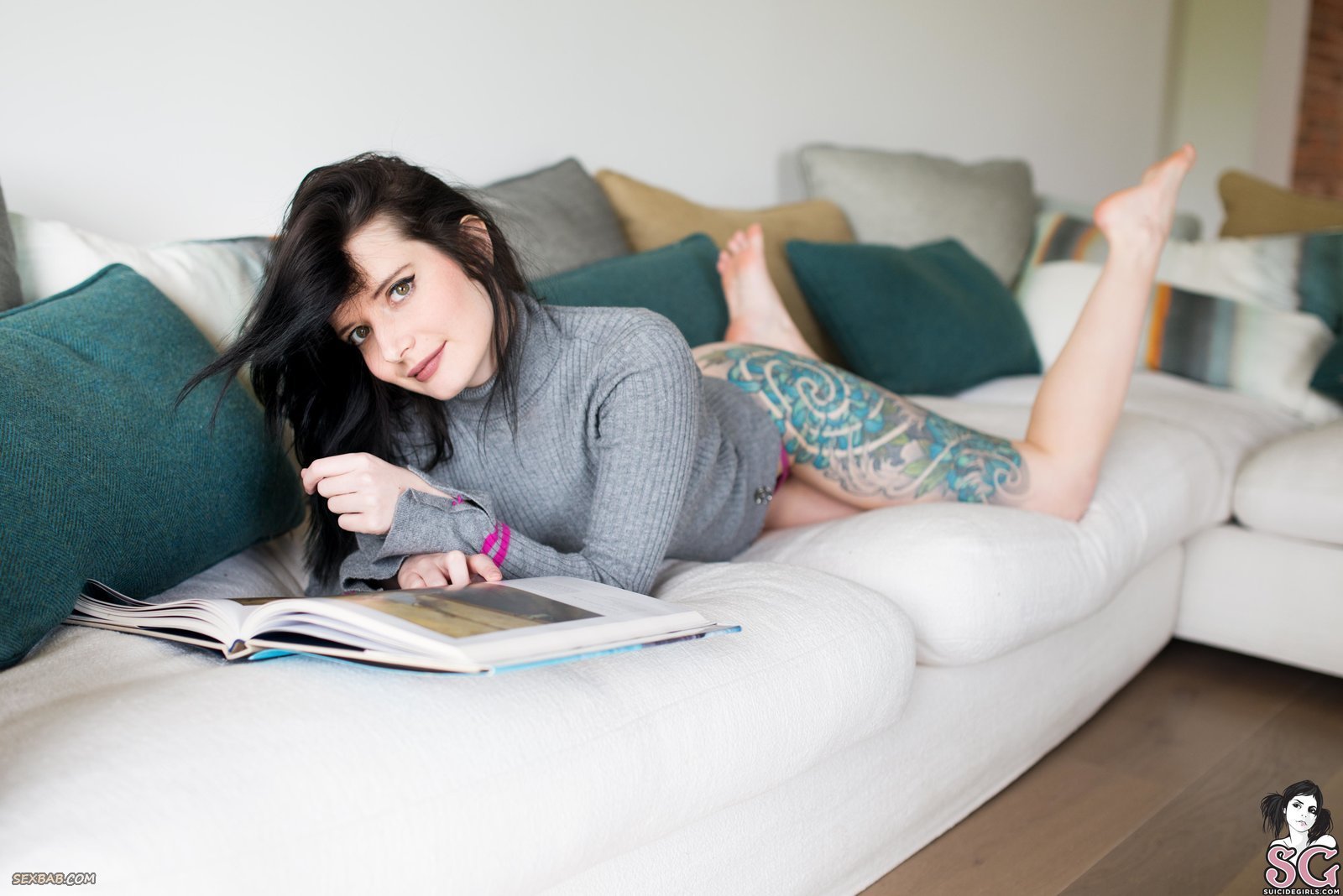 Описание: Привлекательная сексуальная сучка в безумно красивом нижнем белье, кувыркается перед нами на диване в поисках самой соблазнительной позы. Во время съёмки, темноволосая девушка с татуировками лишается трусиков и лифчика и скромно засвечивает плоские сиськи, игриво прикрывая их руками.