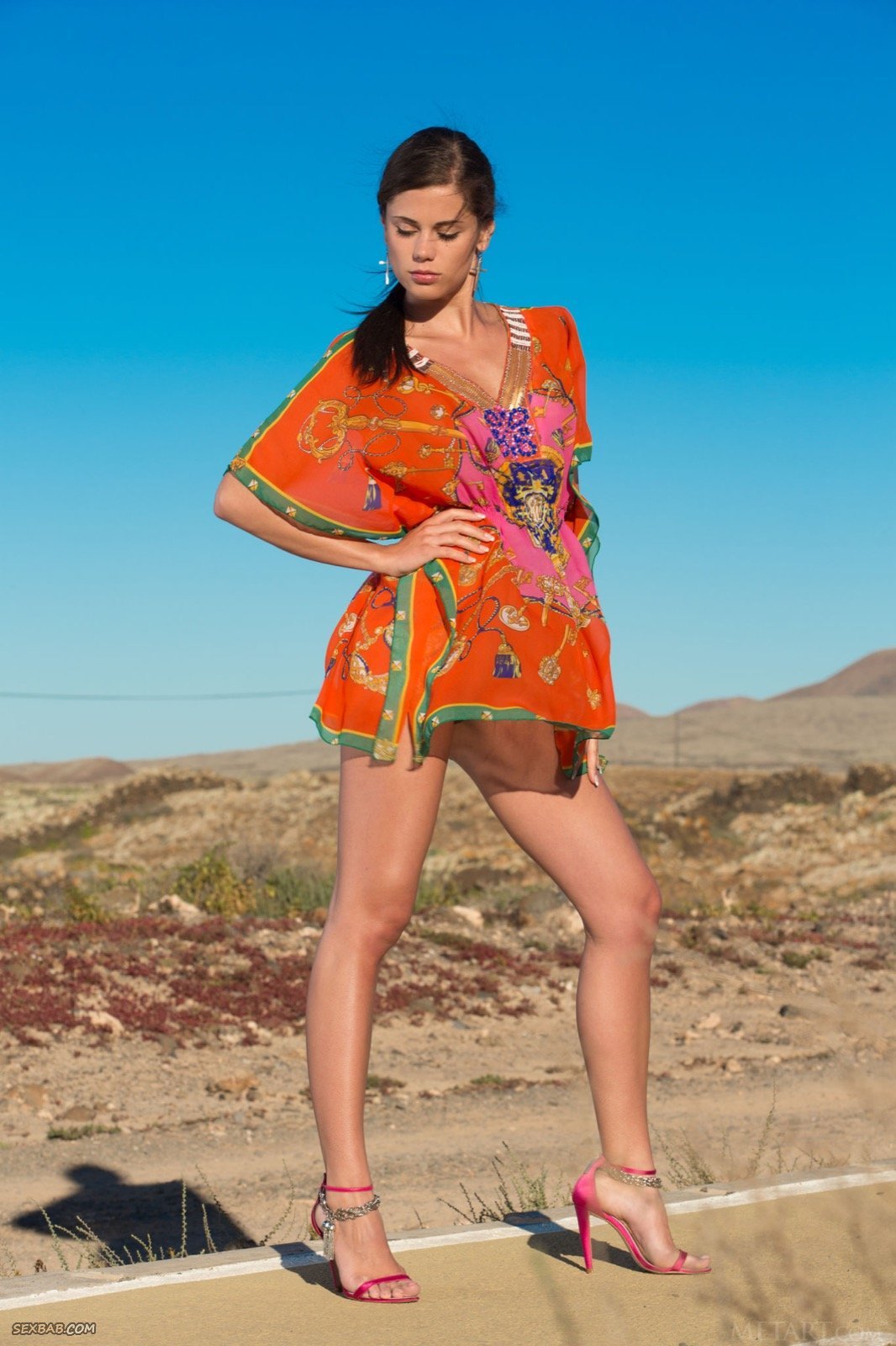 Описание: Прогуливаясь по улице на заброшенной дороге, высокая деваха с длинными ногами без трусов и в коротком платье, присаживаясь и немного раздвигая промежность показывает бритую письку. В будущем улыбчивая красотка все же раздевается догола и так же засвечивает маленькие сиськи с торчащими сосками.