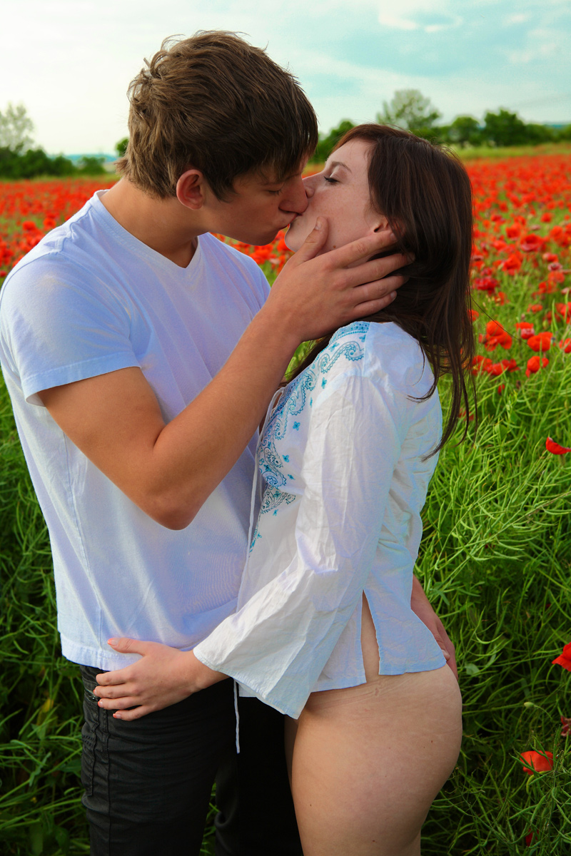 Эротическая фотосессия блондинки на природе